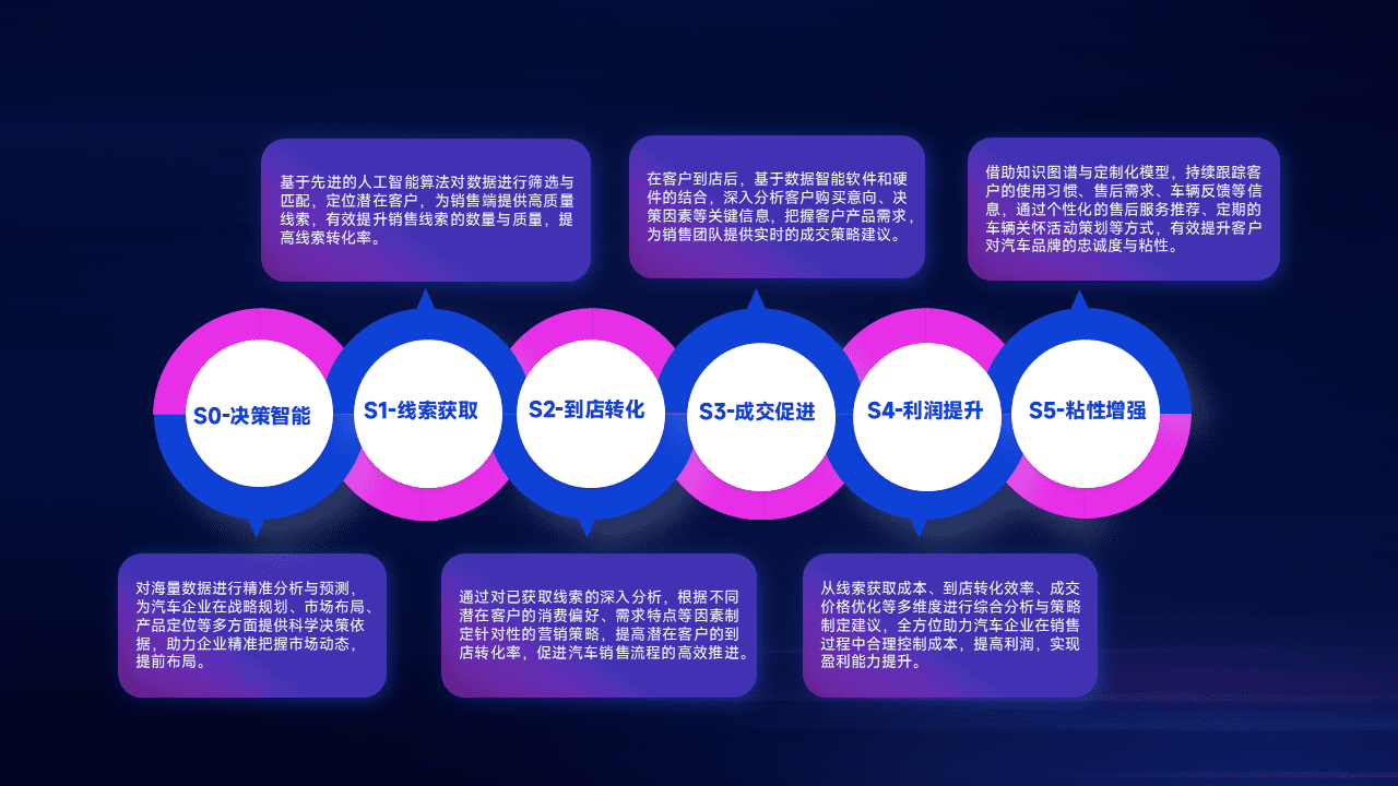 通过拓宽潜在客户来源、、优化线索分配并提高到店转化率,,以增强销售效率。。同时,,利用线索数据不断优化分析模型,,,,有效提升转化率,,扩大营销影响力。。。
